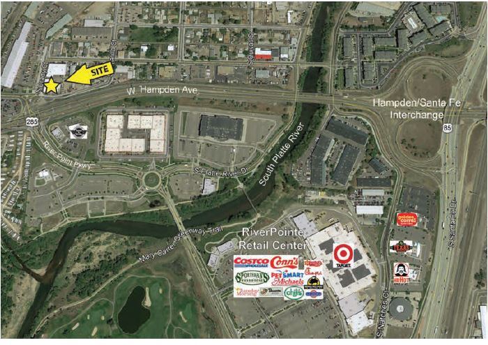 2061 & 2095 W. Hampden Ave offers two sperate commercial spaces for lease, or the whole building can be leased by one tenant. 2061 W. Hampden Ave offers an industrial flex layout with warehouse, office/retail and fenced yard in the back. 2095 W. Hampden Ave offers a retail showroom with warehouse space in the back. The units are also located directly across the street to the north of the River Point at Sheridan development. The units offer exceptional visibility with traffic counts exceeding 75,000 vehicles per day. There are numerous nearby retail & restaurant amenities that include: COSTCO, Steak & Shake, Starbucks, Subway, Target, Panera, Chili’s, Buffalo Wild Wings, Sportsman’s Warehouse, Parry’s Pizza, Qdoba, McDonalds, and numerous others.