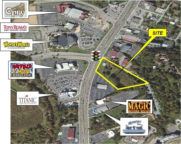 This may be one of your last chances to acquire – not to lease – to own – undeveloped acreage actually located directly on the Parkway in Pigeon Forge. Consisting of 3.278 acres, this property is situated on the nose of a gentle curve in the Parkway. It boasts a 240 foot wide Parkway frontage giving it prominence and excellent visual draw from both directions. The elevated terrace of the land gives it immediate eye-level notice from all passing vehicles. Located at a major 4-way traffic light intersection gives this property premium access to the Parkway in even the most crowded of traffic conditions. Already equipped with 4 dedicated left-turn signals for travelers, this intersection also accesses several attractions via Music Road located immediately across the Parkway including Hatfield and McCoys Dinner Theater, Titanic Museum Exhibit, Wonderworks, Hard Rock Café, Smoky Mountain Opry, and others. Northbound travelers would turn into this property as a natural right-hand turn. Adjacent to this property on the south side is the new National Enquirer Museum followed by the Button Willow Civil War Theater and Museum, Memories Theater, and the new Rowdy Bear Mountain hillside coaster attraction. This end of the Parkway is building up fast! Grab your piece of the action before it's gone! Already zoned and approved for dozens of types of commercial businesses, the location of this property would lend prominence and notoriety to any business located on it. A list of approved business types are in the uploaded associated documents as well as a survey plat. City water and sewer, natural gas, and 3-phase electric are all available. This is a gold-mine of a property just waiting to begin producing. Pigeon Forge is located within one-day’s drive of two-thirds of the US population east of the Mississippi. Our department of tourism reports $65 spent by tourists for every $1 spent on advertising.* Located adjacent to the Great Smoky Mountains National Park, 2015 saw a record 10,712,674 visitors go through the park, making it the nation’s #1 most visited National Park, ranking the Grand Canyon at #2 with half as many annual visitors. This was the 3rd consecutive year that over 10 million tourists visited the park.* Imagine the possibilities of having that many eyes on your business every year. You can’t purchase any other advertising space for a one-time fee that produces those annual numbers consistently. While I cannot tell you how many walk-in customers your business will generate, all I can do is show you the potential to produce a walk-in-to-purchase customer. This property will need some site planning and excavation to maximize potential. The degree to which you develop and use the potential available at this location is up to you, but should be virtually unlimited.