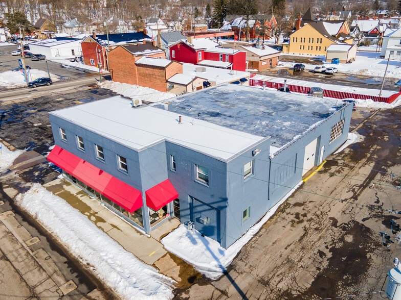 Real Estate. Great location and road exposure; .82 acres total. Two parcels sell as one unit. 4,100 sq. ft. auto shop with 16’ roll-up door. 1,420 sq. ft. show room and offices, restroom, 1,420 sq. ft. overhead completely remodeled apartment with fireplace. Front corner display lot plus rear corner lot. Nice clean and well maintained and adaptable to multitude of uses. Has been a profitable business.