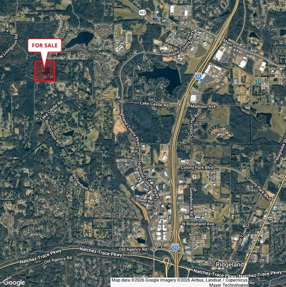 Located just minutes from top-rated schools in the Madison County School District, established office parks, and major retail destinations such as The Renaissance and The Township at Colony Park, the site combines a peaceful setting with exceptional accessibility. The property includes a private drive to a 2,500 SF house built in 1975 overlooking the private lake.