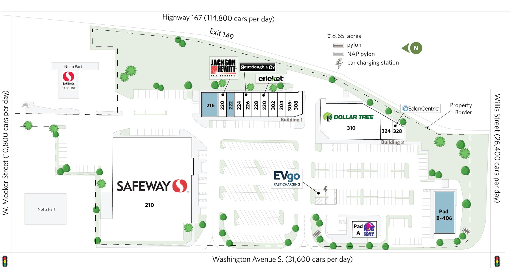 - Situated immediately off Highway 167, the property is well-positioned in a densely populated sub-market.