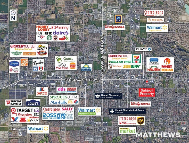 - Strong Demographics & Traffic Counts – Hemet features a consistent demographic profile with over 180,000 residents within a five-mile radius