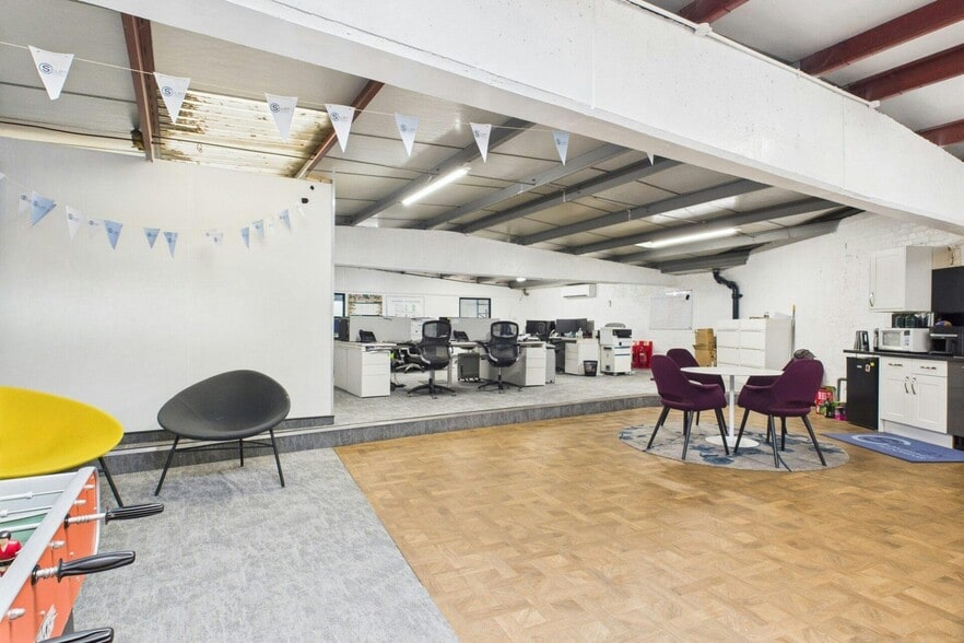 - Features: Roller shutter entrance, double height storage space at ground floor level, well fitted office accommodation over the first floor.