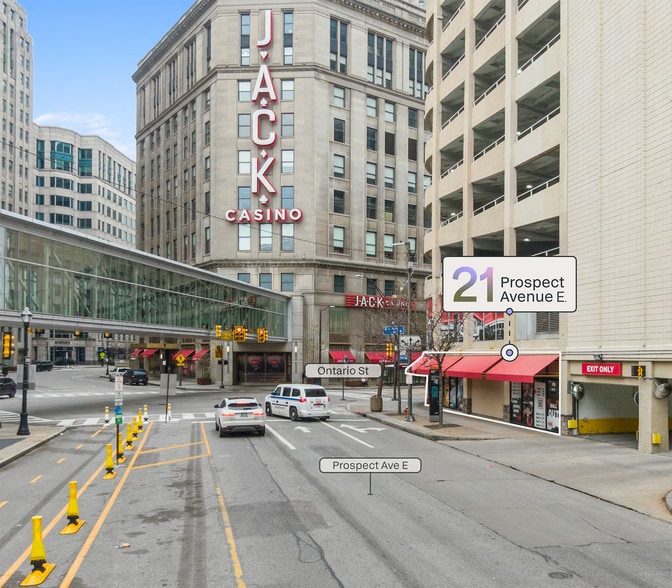21 Prospect is positioned under a block from the bustling East 4th Street Retail Corridor, with tons of traffic driving hotels and dining, retail, and entertainment tenants mere steps away. 21 Prospect Ave E boasts unbeatable access from all parts of Cleveland via all modes of transportation: car, public transit, bicycle, and walking. Its close proximity to all of Cleveland’s biggest traffic drivers and to its most bustling retail zones means that this space is perfectly poised to suit any retail or restaurant need.