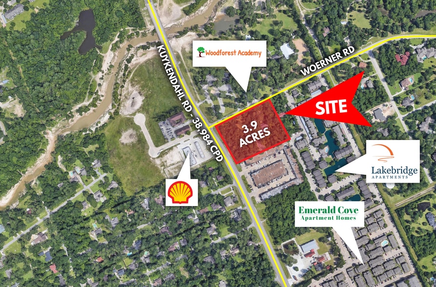 Explore this exceptional opportunity with 4.23 acres of prime undeveloped land ideally situated at the southwest corner traffic light of Kuykendahl and Woerner Road. Boasting 345 feet of frontage along Kuykendahl and 495 feet along Woerner Road, the property offers full utility (water and electricity)