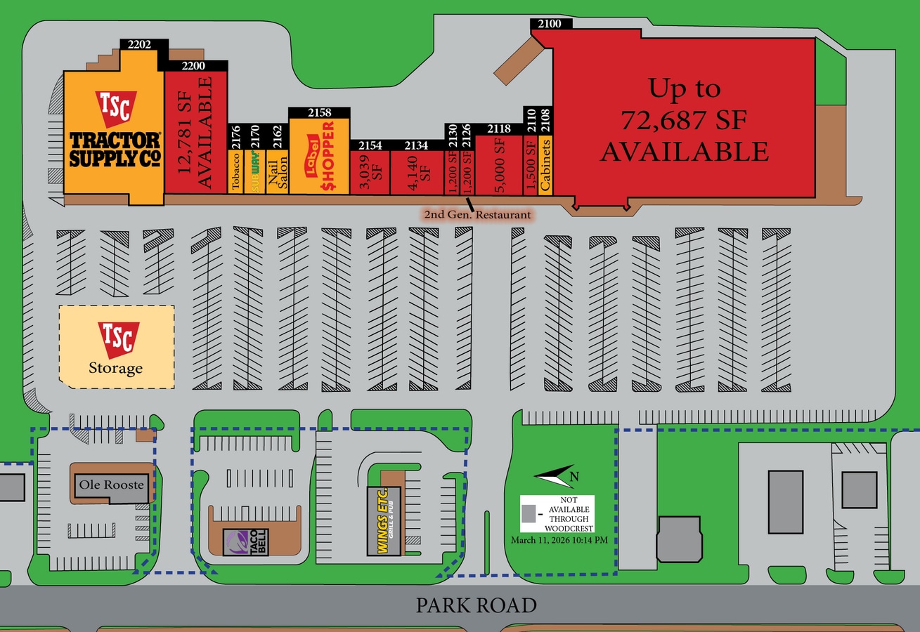 | Min. Divisible | 1,200 SF | Frontage | 1,112’ on Park Rd |