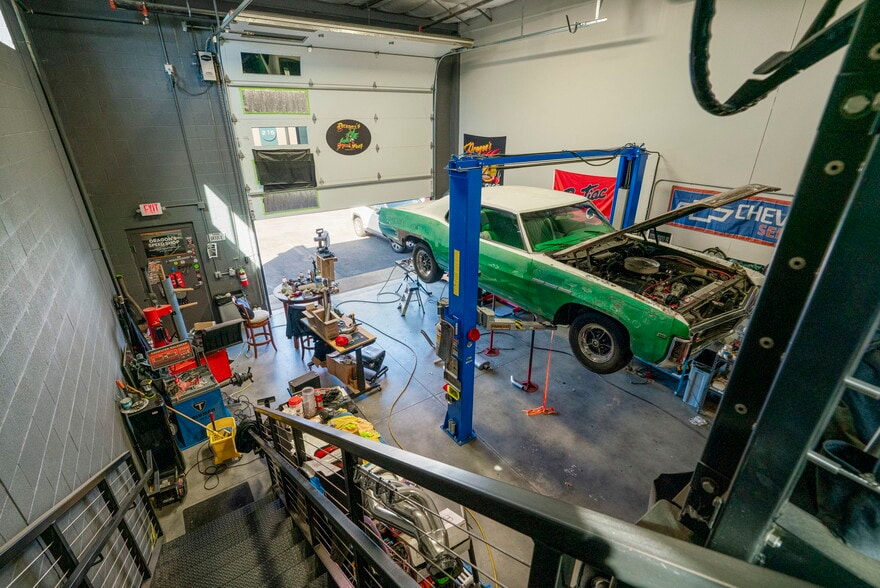 Prime Round Rock location just off SH 45 Toll! Rare opportunity to own a 2-story flex/warehouse unit totaling approx. 1,460 SF (1,125 SF main level + 335 SF mezzanine). This unit stands out with two large side windows and sliding glass door, providing excellent natural light throughout. Features include a 14’ x 14’ powered overhead garage door with windows, 21’4” clear height, and a fully finished bathroom with hot water. The space is fully insulated and individually heated/cooled with a Carrier HVAC system, spiral ducting, and Honeywell Wi-Fi thermostat. LED lighting throughout. Large Ceiling Fan. The car lift is negotiable. Additional highlights: water access on the side of the building (ideal for vehicle/equipment wash) and functional layout suitable for a variety of uses. Perfect for business use, storage, or personal warehouse/man cave. Turnkey and ready for immediate use. HOA: $365/Month Includes Water, Sewer, Trash, Grounds maintenance, Landscaping
