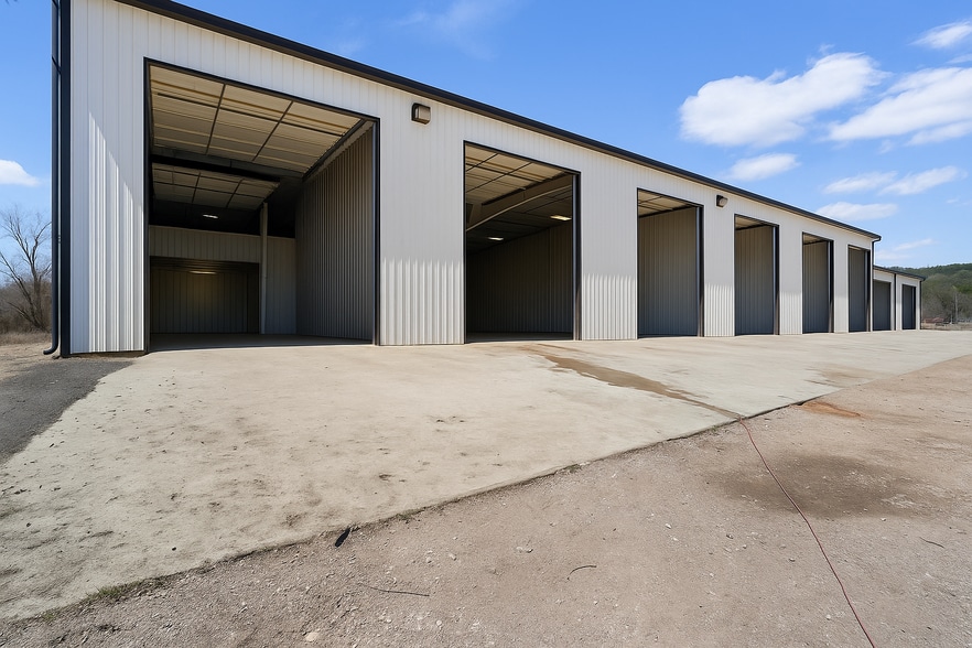 Situated on 2.24 acres, the property features eight large garage bays, providing ample room for vehicle storage, repairs, or equipment handling.