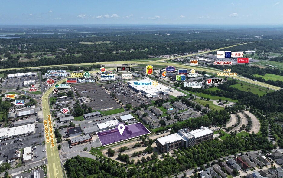 Expansive retail/office space situated within Brannan Plaza at the high-traffic intersection of Harkrider St and SWN Dr, which sees a combined 25,000 vehicles per day. Ample parking. Co-tenants include The Mighty Crab, Rachel Manila Fitness, Conway Missionary Baptist Church, Ujima Maternity Network, AR TKD Martial Arts, and Arkansas Select Tax Service. Conveniently located near I-40, this property offers easy access to the Conway Business District and is just minutes from top educational institutions, including the University of Central Arkansas (2.4 miles) and Hendrix College (0.4 miles). Property is adjacent to the Village at Hendrix and Flywheel’s 120,000 SF office building. Surrounded by numerous national and regional retailers: Walmart Supercenter, The Purple Cow Restaurant, Outback, David’s Burgers, AT&T, IHOP, and more.