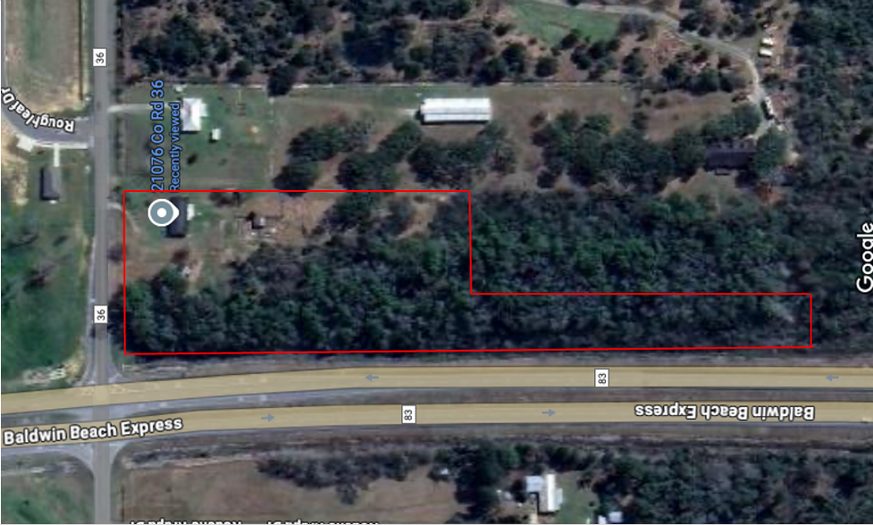 21076 County Road 36 - Baldwin Beach Express and County Road 36 5.34 Acres of Commercial Land Offered at $492,228 CAD in Summerdale, AL 36580