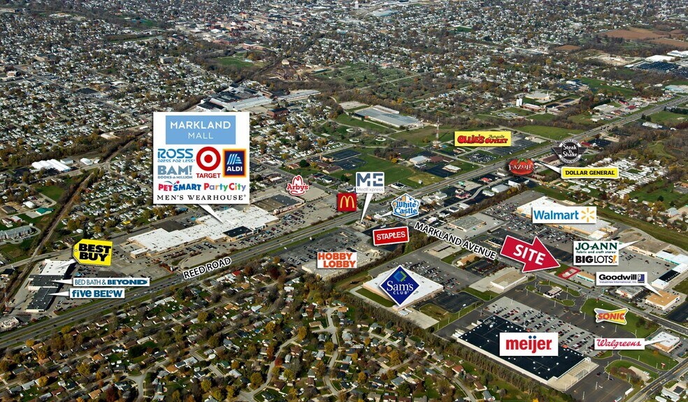 • anchored by Walmart • located in main retail corridor near Markland Mall, Sam’s Club, and Meijer • café/smoothie shop with drive-thru • daily traffic counts: 23,710 on Reed Road and 22,295 on Markland Avenue
