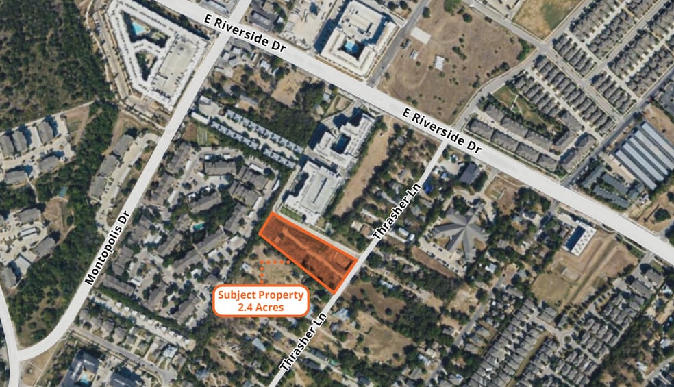 Size: 2.4 Acres (TCAD parcel ID: 290504) Zoning: SF-6-NP - Townhouse & Condominium Residence Potential Uses:Townhome, Condominium, Duplex Infrastructure & Utilities: Water + wastewater lines are in Thrasher Lane (capacity and service are to be indepe