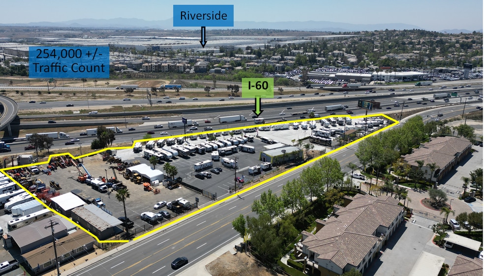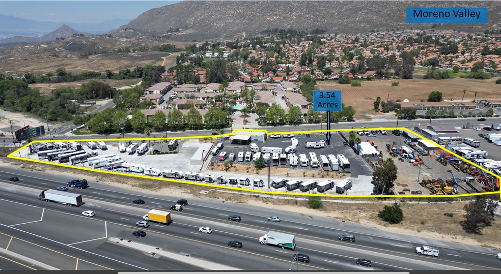 This ±116,000 SF fully secured lot offers multiple gated entrances and exits and is currently operating as a fully functioning RV dealership. Strategically located with prime I-215 freeway frontage, the property benefits from an estimated 254,000 daily freeway traffic count and 15,000+ vehicles per day on the street side. It also features monument signage that generates additional monthly income.