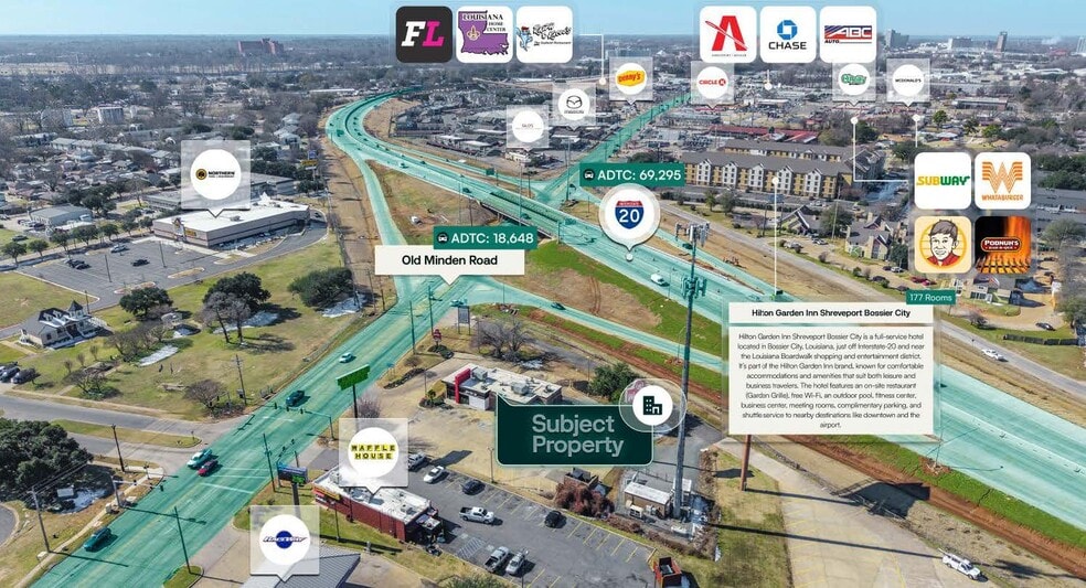 Proximity to Downtown Shreveport & Highway I-20 | Over 69,290 ADTC | This site benefits from being in close proximity to Shreveport, the region’s primary economic and commercial hub, providing strong exposure to both local and commuter traffic. The surrounding trade area supports consistent consumer demand, creating an ideal opportunity for a new tenant to establish a strong presence and thrive within the greater Shreveport market. Additionally, the site is located directly off of I-20, a major thoroughfare that runs directly through Shreveport and sees traffic counts exceed 69,290 vehicles daily.