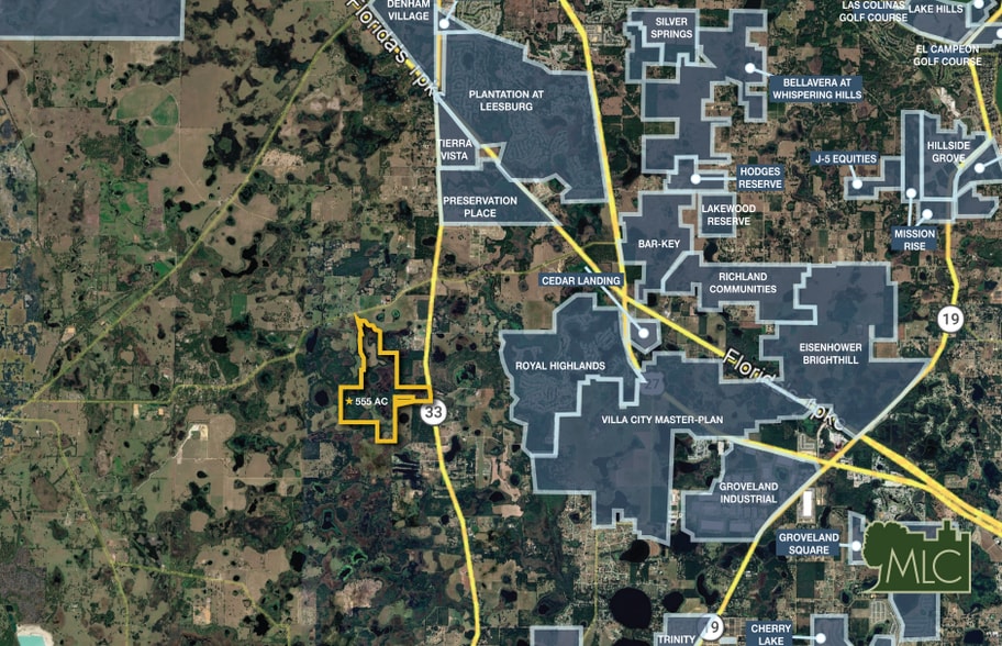 This rare 555-acre agricultural parcel presents a premium opportunity in one of Central Florida’s most dynamic growth corridors. Positioned less than 2 miles from SR 50 and minutes to the SR 50/SR 27 intersection, the site offers direct access to major east-west and north-south travel routes that link Groveland with Clermont, Tavares, and the greater Orlando metro. Surrounded by significant residential and mixed-use growth, Lake County has experienced great population expansion over the past decade, with Groveland among the fastest-growing communities in Florida. Regional activity includes large-scale master-planned developments in nearby Clermont and ongoing residential expansion in Howey-in-the-Hills, all signaling strong demand for new housing, services, and employment centers. With proactive municipal planning and major transportation linkages at its doorstep, this property offers unmatched connectivity to emerging regional destinations and future economic growth.