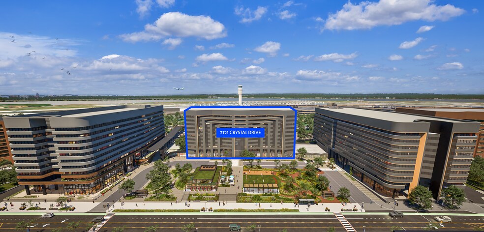 2121 Crystal Drive is a 12-story, LEED Silver office building located directly across from Reagan National Airport, offering sweeping views of Washington, DC’s monumental core, the Potomac River, and airport runways. Positioned in National Landing’s South District—one of the country’s fastest-growing innovation hubs—the building provides unparalleled connectivity with walkable access to Metro, VRE, Amtrak, and more than 10,000 parking spaces. The property sits steps from the future pedestrian bridge to Terminal 2 at Reagan National Airport, creating a one-of-a-kind “Global Gateway” connection that links tenants directly to flights, hotels, dining, and meeting spaces. Surrounded by a diverse mix of restaurants, retail, and neighborhood amenities including Surreal Global Kitcehn, Colada Shop, Bar Colline, Tatte, Toastique, Water Park, Tacombi, Whole Foods Daily Shop, Alamo Drafthouse, daydrift, [solidcore], and NiHao, the area continues to evolve with new concepts arriving soon. The South District is supported by more than 17,000 apartment units, 5,500 hotel rooms—including the new AC Hotel and an additional 330+ key hotel underway—and an active 18-hour environment featuring Volo Sports courts, refreshed facades, landscaped parks, and direct access to the Mount Vernon Trail. Home to a deep bench of defense, tech, and research organizations—from Fortune 500 leaders like Lockheed Martin to emerging innovators like Nooks—the district offers secure spaces, access to cleared talent, and an amenity-rich, walkable neighborhood where business, leisure, and daily life intersect.
