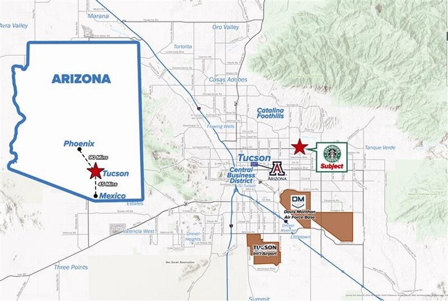 With a 10-year primary lease term, this offering presents an excellent opportunity for an investor to acquire an income-producing commercial property with the industry-leading premier global coffee shop operator as tenant at a high-quality sun belt City of Tucson in-fill location.