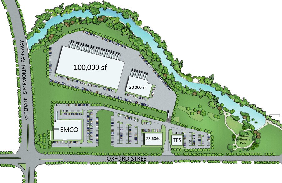 The development is located in east London at Oxford Street East and Veteran’s Memorial Parkway providing easy access to Highway 401. The sites are surrounded by numerous international corporations and are close to London International Airport and Fanshawe College. Excellent exposure on Oxford Street. East and/or Veterans Memorial Parkway. Build to suit buildings available up to 130,000 SF. 5% Office space. Easy access to Highway 401 via Veteran’s Memorial Parkway. Zoned to include Office, Retail, Commercial, Industrial and Warehouse. Located close to London International. Airport, along Bus Transit Rout