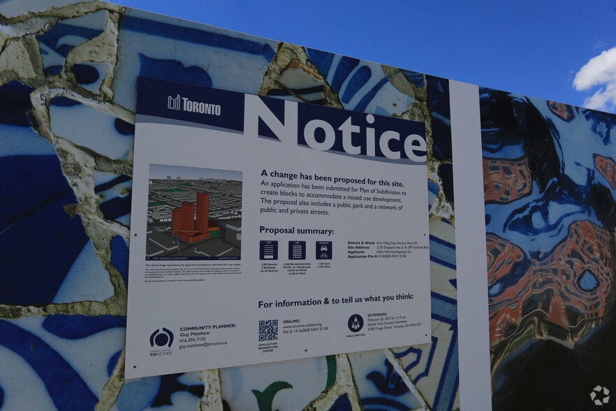 NOTE: PLANS ARE SUBJECT TO CHANGE. PLEASE REGISTER INTEREST WITH LISTING BROKER Up to 60,000 SF of retail space available located on the southwest corner of Sheppard Avenue East and. Consumers Road, just east of Fairview Mall with close proximity to Highway 401, Highway 404 and the Don Valley Parkway. There is one level of surface parking and two levels of deck parking for a total of approximately 170 spaces dedicated to the commercial component of the development. Finally, this property is immediately adjacent to a proposed LRT stop at Sheppard and Consumers.
