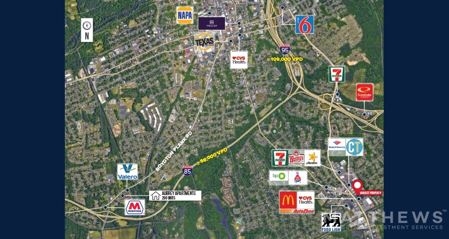 - Nearby national tenants include McDonalds, Autozone, CVS, NTB, Food Lion, 7-Eleven, Hardees, and Wendy’s