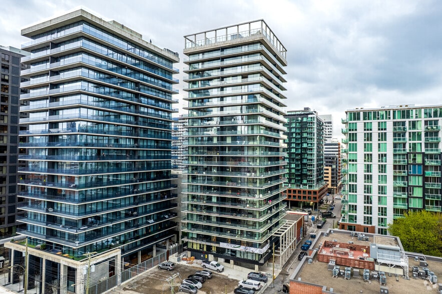 Modern retail spaces within a vibrant mixed-use development in the heart of Griffintown. These ground-floor units feature high visibility, a pedestrian-friendly walkway, and are ideal for boutique shops, cafés, or service-based businesses