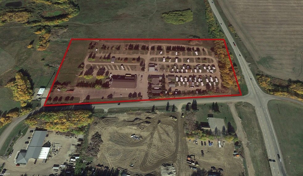 RV PARK/CAMPGROUND: 7 acres of land. Great holding property with RV park/campground income. 20,000 SF BUILDING ON 3 ACRES: 20,000 square foot multi-use building with hall and kitchen space facilities. Situated on 3 acres of land. Frontage on Winterburn Road (10,000 plus vehicles per day). Current zoning allows for hotel/motel, commercial development or continued use as an RV park. Area structure plan has land slotted for industrial use IB or IL. Great access to Stony Plain road or Anthony Henday. Properties can be sold together for a combined total of 9 acres.