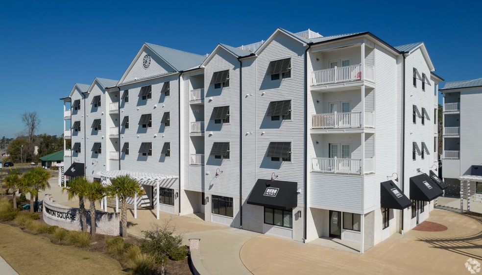 ± 2,125 SF of office space for lease on the ground level of Harrington Square, a mixed-use project, located along the highly traveled Village Road in Leland. Suite 110 features private offices, a restroom, and a large open work area.