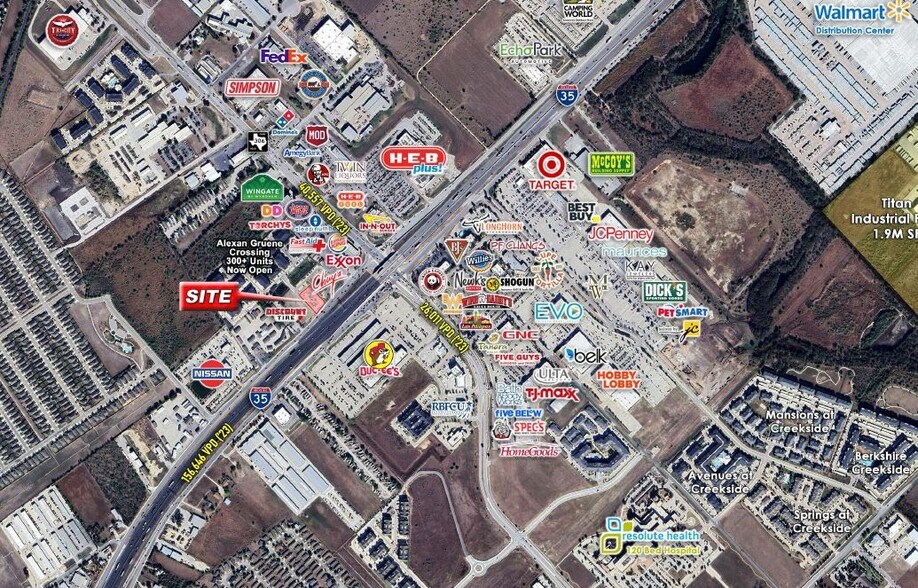 - Located in Comal County, one of the fastest growing counties in the U.S. - Adjacent to over 1M+ square feet of established retail - Close proximity to Canyon High School with enrollment exceeding 2,700 students - Area retailers include: HEB, Target, Best Buy, Evo Cinemas, Home Goods, Dick's, JC Penney, TJ Mazxx, Ross, Belk, Ulta, Burlington, Specs, In-N-Out Burger, Longhorn Steakhouse, BJ's Brewhouse, Willie G's, Mod Pizza, and Whataburger.