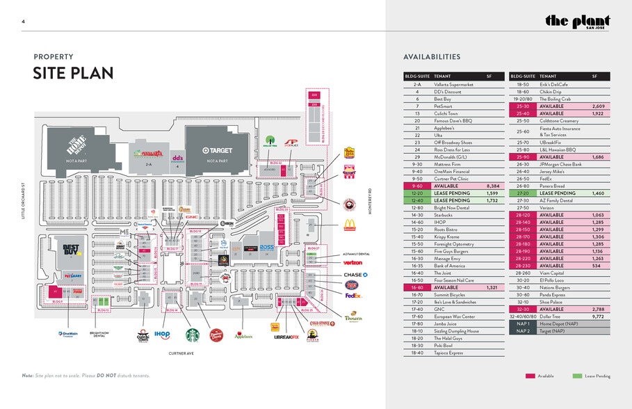 A 650,532 SF Retail Power center featuring tenants such as Target, Home Depot, Best Buy, Ross and PetSmart City of San Jose’s largest power center. Located across from new communities of Communications Hill and Dairy Hill totaling over 6,000 residential units. Located near the affluent Willow Glen Neighborhood. Features unique Town Square with inviting open space and outdoor seating. Art Moderne architectural style based on The Plant.