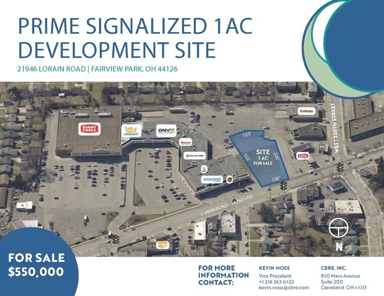 Prime 1 AC signalized development site in high barrier to entry Fairview Park market. The site is located in Fairview Center, a grocery anchored center with Giant Eagle, Dollar Tree, Goldfish Swim School, & more! Neighboring tenants include McDonalds, GetGo, Key Bank, Fifth Third, Dunkin Donuts, Burger King, Pet Supplies Plus, & more.