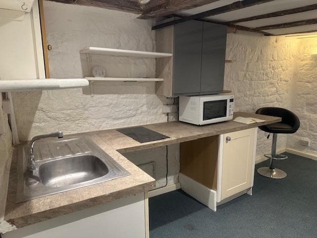 The premises are located in the basement of a Grade II listed building in the heart of Petersfield High Street. The space comprises an office area, a separate kitchen, and a WC.