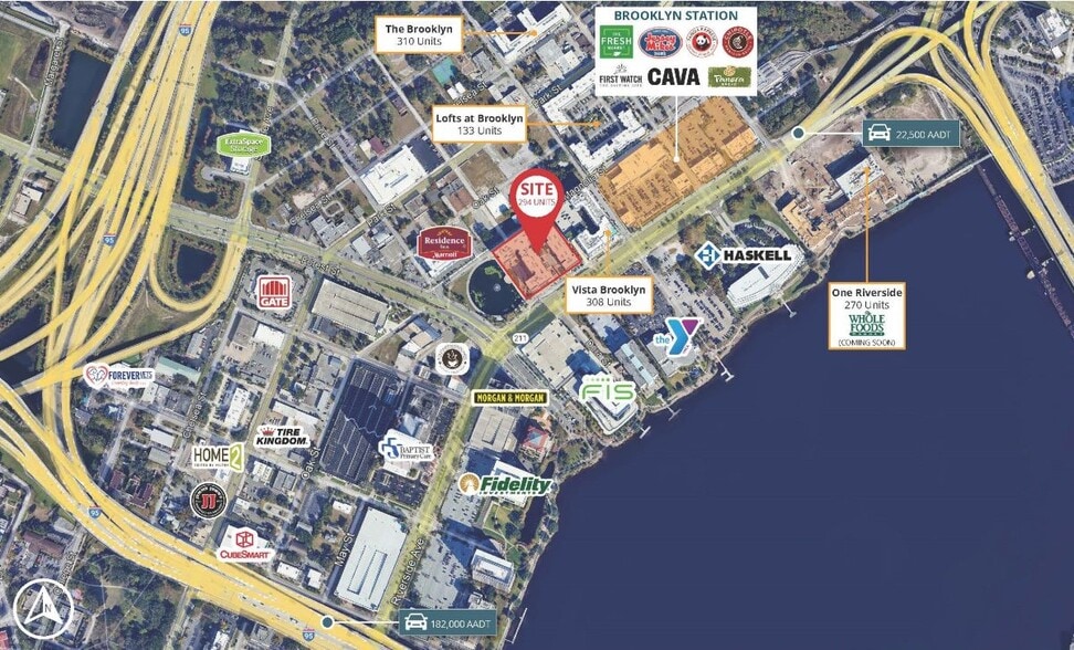 » 4,560 SF space available on the ground floor of a 5-story/294-unit apartment complex » Strong daytime population pull from nearby business districts (230,654 within 5 miles) » Located on Riverside Avenue with 22,500 AADT » Attached parking garage with 411 spaces and an additional 101 shared parking spaces with adjacent property » Adjacent to Unity Plaza and Brooklyn Station and within walking distance of Historic Riverside, Avondale, and Five Points