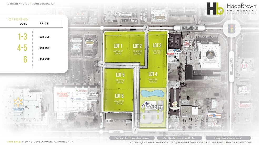 2200 E. Highland Dr. - Fountain Square Redevelopment - HIGH-PROFILE! 1.2 - 1.6 Acre Commercial Land Lots Offered at $1,278,034 - $2,524,974 CAD Per Lot in Jonesboro, AR 72401