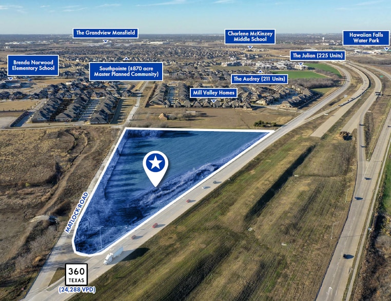 The site benefits from excellent exposure to Highway 360, which carries 20,000+ vehicles per day, providing strong visibility and access. Its central location offers convenient connectivity to Midlothian, Arlington, and the broader Dallas–Fort Worth Metroplex, allowing the property to capture both local and regional demand. Supported by continued residential expansion, increasing commercial investment, and strong traffic fundamentals, the Mansfield Retail Development Site presents a prime opportunity for retail and mixed-use development within a high-growth Fort Worth submarket.