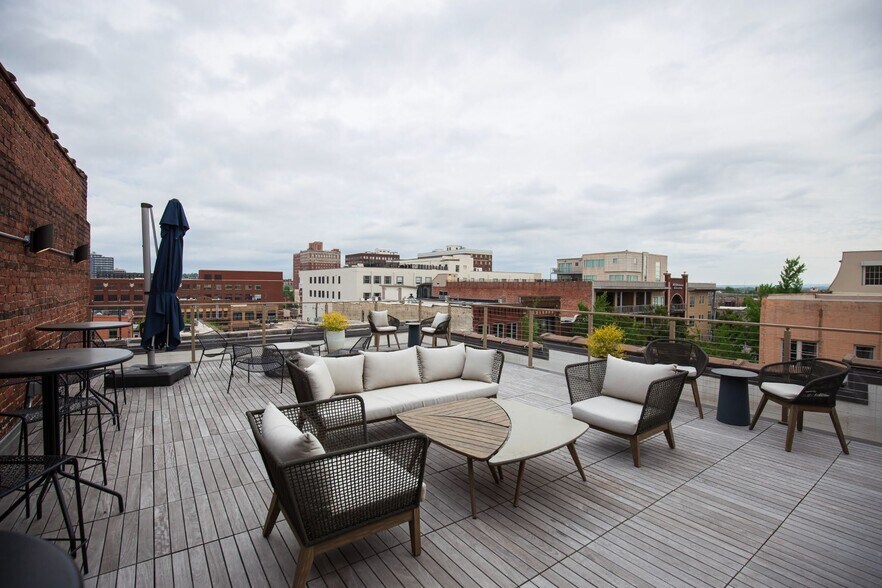 - The space is move-in ready, featuring high ceilings, century-old hardwood floors, and exposed brick