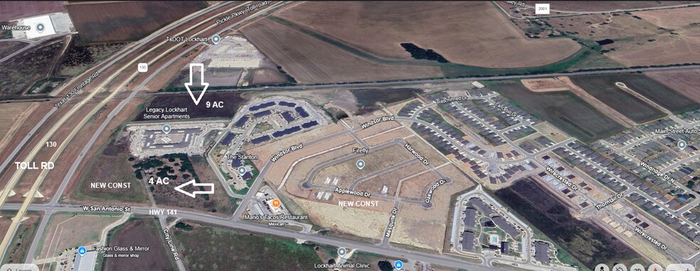 Lockhart is thriving! Legacy Senior Apartments now opening on 7.5 Ac middle site. The Stanton Apartments, Valero Gas/Convenience Store completed and open, and new medical offices, retail stores & restaurant completed on adjacent 5.5 Ac corner site. 1st phase of Firefly homes is underway!