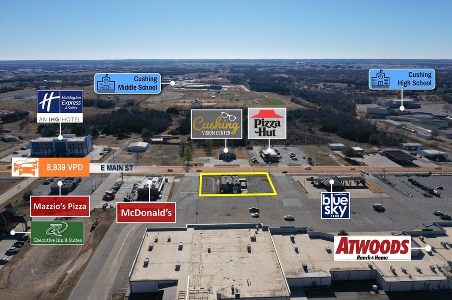 Cushing is uniquely positioned in Payne County as the “Pipeline Crossroads of the World,” anchored by one of the largest crude oil storage and distribution hubs in North America—where multiple major pipelines converge and over 90?million barrels of crude can be stored, making it the delivery point for the NYMEX West Texas Intermediate benchmark. This energy infrastructure legacy translates into a regional employment base tied to energy, logistics, agriculture and related services, with healthcare, retail and education also among the largest local industries. The Property is positioned along a dense retail corridor anchored by prominent national tenants such as Walmart, McDonald’s, Pizza Hut, Mazzio’s, Atwoods (shadow-anchor), Blue Sky Bank, all of which drive significant daily traffic to the area. Additional nearby demand drivers include Cushing High School, Cushing Sports Complex, Cushing Rodeo Arena, and a variety schools and government offices, contributing to strong daytime traffic and cross-shopping. The surrounding trade area features a diverse and growing residential base, with approximately 10,565 residents within a 5-mile radius and 19,238 residents within 5 miles, coupled with an average household income exceeding $64,000. These strong demographics, combined with the site’s exceptional visibility, accessibility, and proximity to major retail anchors, position the Property for a wide range of re-use opportunities, owner-user demand, and long-term leasing potential.