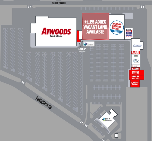 | Total Space Available | 16,030 SF | Frontage | 969’ on Ponderosa Dr |