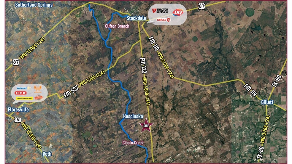 - Rural setting with strong traffic counts and regional connectivity.