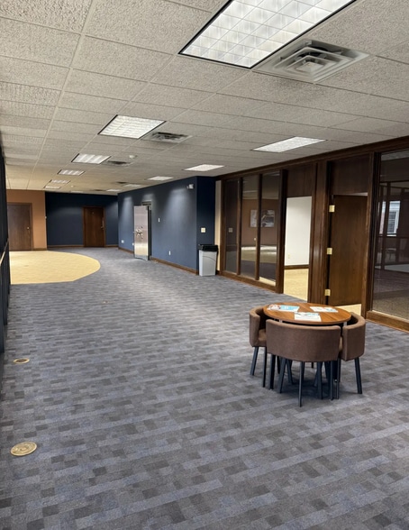 Position your business in one of Downtown New Albany’s most recognizable historic buildings, ideally located on Spring Street between Bank and Third, adjacent to the Carnegie Center. A local landmark since 1988, this second-floor space offers 3,566 SF of highly functional, natural light-filled office space with excellent parking and flexible layout options. The second floor suite available for lease features a strong mix of private offices and expansive open workspace, including two large corner offices, two mid-size offices, and a unique former bank vault—ideal for a secure storage, or creative workspace. Approximately 3,566 SF of open space is flooded with natural light and overlooks the atrium, making it perfect for a collaborative work environment. Tenants will enjoy access to a shared main-level lobby, elevator service, dedicated restroom, and two stairwells for safety and convenience. The first floor is occupied by a well-established pediatric practice. This opportunity is well-suited for professional office, creative, medical, or back-to-office users. If you’re looking for a character-rich downtown location with flexibility, visibility, and convenience, this space delivers!