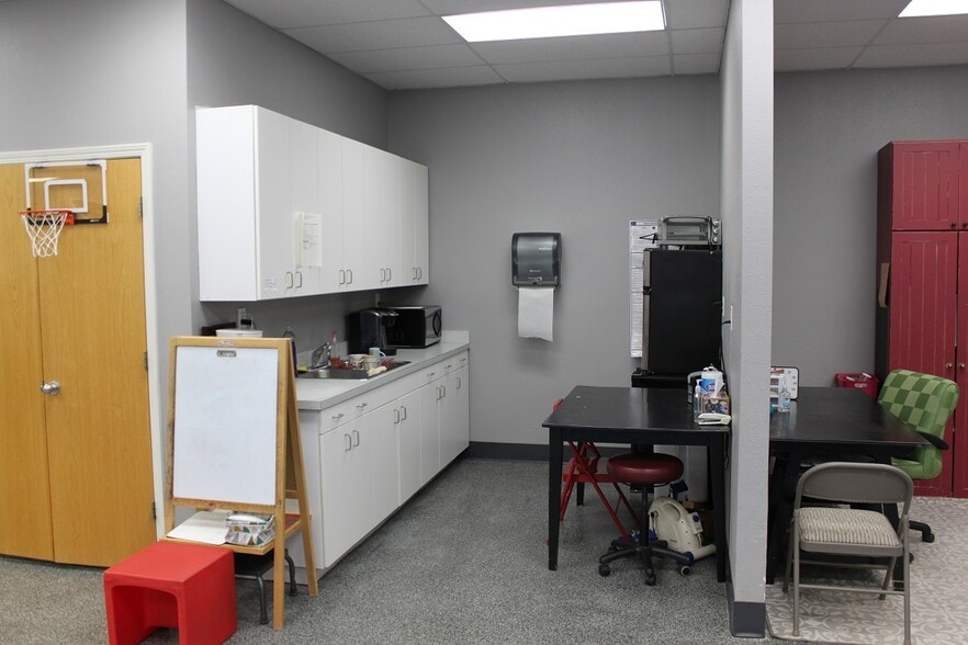 The first level features 5,500 square feet of functional space, complemented by an additional 895 square feet on the second floor—perfect for offices, administrative use, or expansion. The interior has been thoughtfully updated with commercial-grade epoxy flooring, refreshed paint throughout, updated carpet in office areas, and updated flooring in both men’s and women’s restrooms.