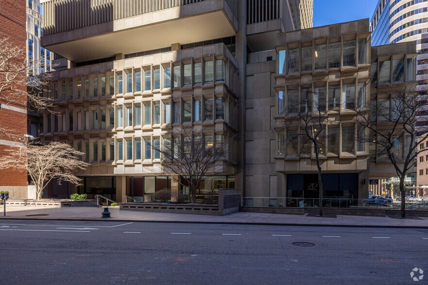 Located within Boston's Financial District, the landmark offers panoramic views of the city and harbor, an landscaped plaza area and a recently renovated wood (African makore), limestone, marble, and bronze-detailed 2-story lobby. Lobby amenities include a coffee shop, newsstand, barber, and shoeshine stand. Adjacent to Post Office Square Park and the Hotel Meridien with immediate access to all major expressways and public transportation, including the South Station subway and commuter trains. 3 Otis elevator banks with microprocessor-based controls. 24 hour manned security. Electronic card access control systems. 2 basement levels. Chilled water taps for supplemental cooling requirements. Floor-by-floor VAV HVAC system with multi-zones per floor. Recessed punch windows with hidden sashes. Safety systems include: smoke & heat detectors, pressurized stairwells, emergency PA system, and stand-alone emergency power generator. Structural capacity: 100 lbs per sf. 6th floor is a mechanical floor. 3-phase power. SW quadrant of intersection between Oliver Street and Franklin Street