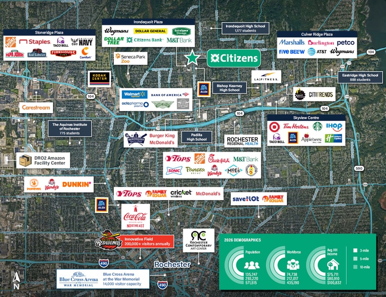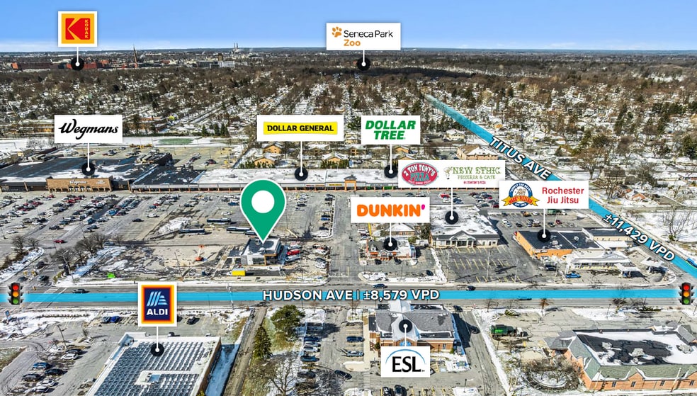 Strategically positioned along Hudson Avenue, a heavily traveled north-south arterial serving Irondequoit and connecting directly to Downtown Rochester, the site benefits from strong daily traffic, dense surrounding residential neighborhoods, and proximity to major retail anchors including Wegmans, ALDI, Dollar General, and multiple national QSR brands. The combination of new construction, corporate credit, and a prime infill suburban location makes this a compelling long-term passive investment within a high-performing Upstate New York market.