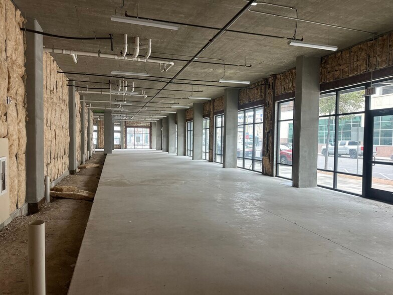Storefront, ground-level retail space at Heritage Plaza in south Downtown San Antonio. Built in clientele from Heritage Plaza, a luxurious 341-unit (322 occupied) apartment complex, and surrounding hotel, apartment complexes and office buildings.
