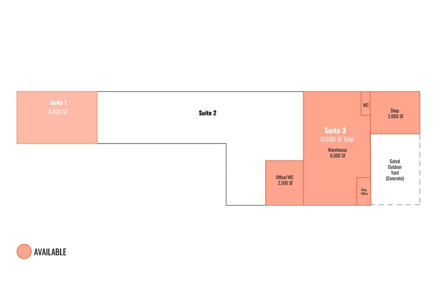 Suite 3: 10,600 SF - Office/Warehouse - Fully HVAC - 3 Jib Crane - Small outside storage with additional outside storage space available