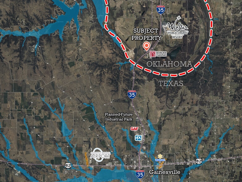 Ownership is looking to sell the subject property to a developer/investor who can take advantage of the site’s strategic location along the highly traveled highway, Interstate 35. The land is situated right off the first exit of I-35 as you enter Oklahoma from Texas. On top of the 45,000+ vehicles per day that travel I-35, it also benefits from the traffic generated from the nearby Casinos (Border Casino and Winstar World Casino and Resort). When a property is not located within the city/town limits, such as this one, they generally have more options/flexibility when it comes to potential permitted uses and a simpler and more streamlined approval process.