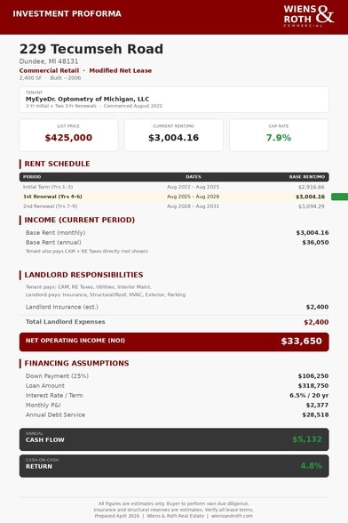 229 Tecumseh St 2,400 SF Retail Building Dundee, MI 48131 $582,424 CAD ($242.68 CAD/SF) 8.24% Cap Rate