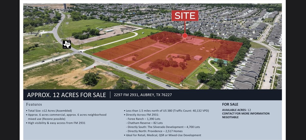 | 2347 FM 2931, Aubrey, TX 76227 | Land | 3.47 AC | - |