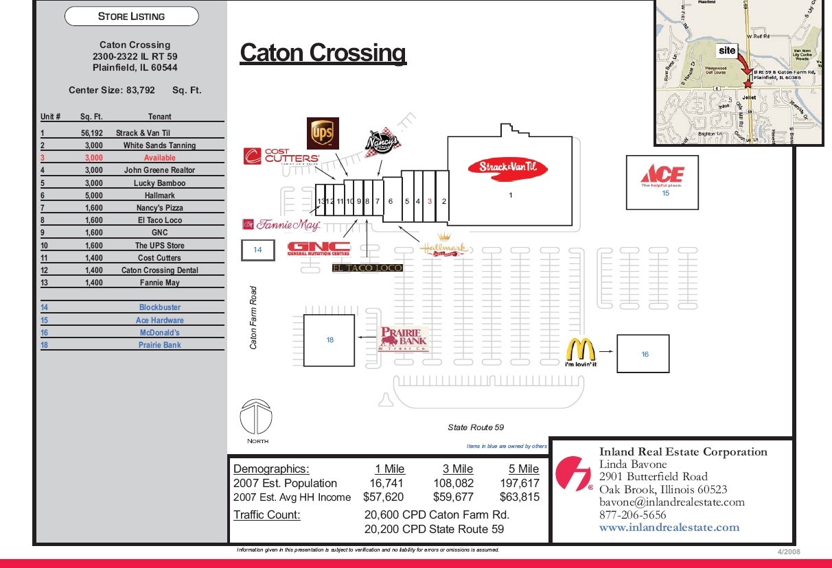 | Center Properties | 4 | Cross Streets | Caton Farm Rd |