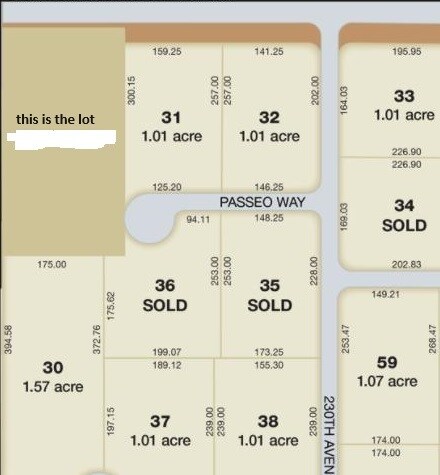 Flat hard corner lot with 210 feet of frontage on Beloat, and access direct from Passeo Way. Dirt on site for building pad now. Electric on site. Currently split into 2 parcels, buildable lots with BID irrigation rezoning on 2 required.